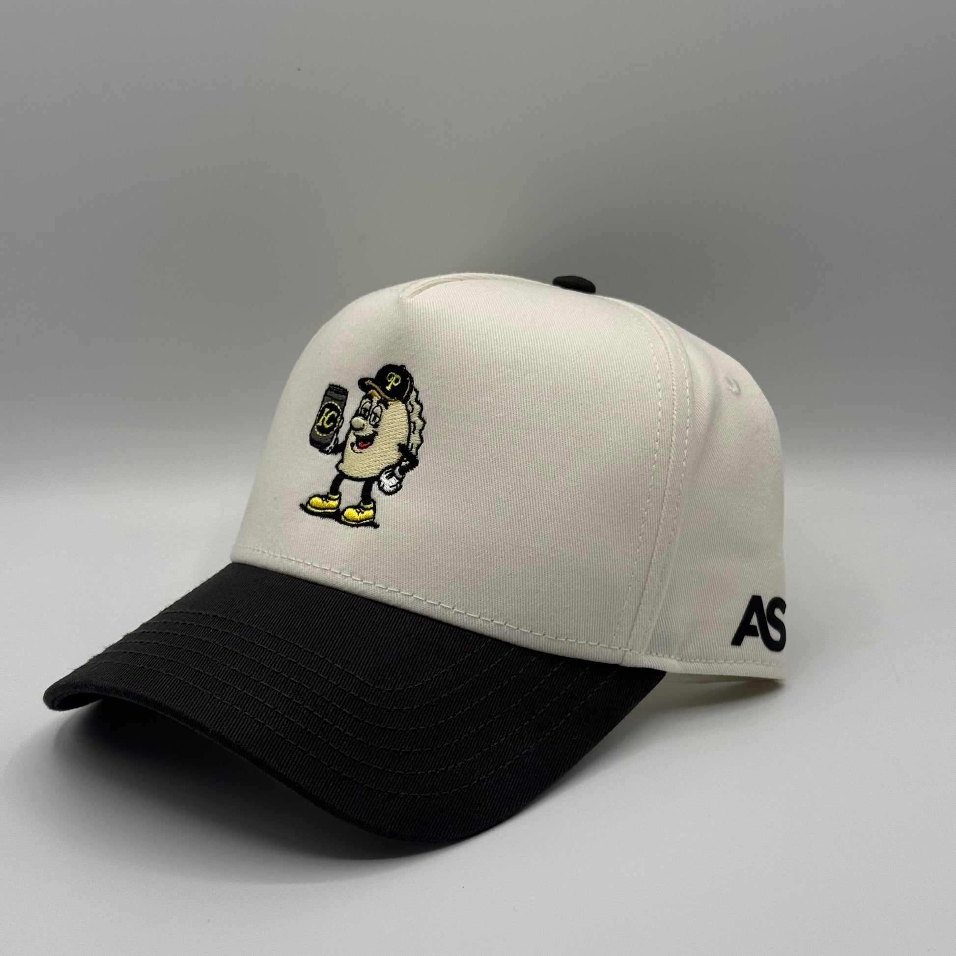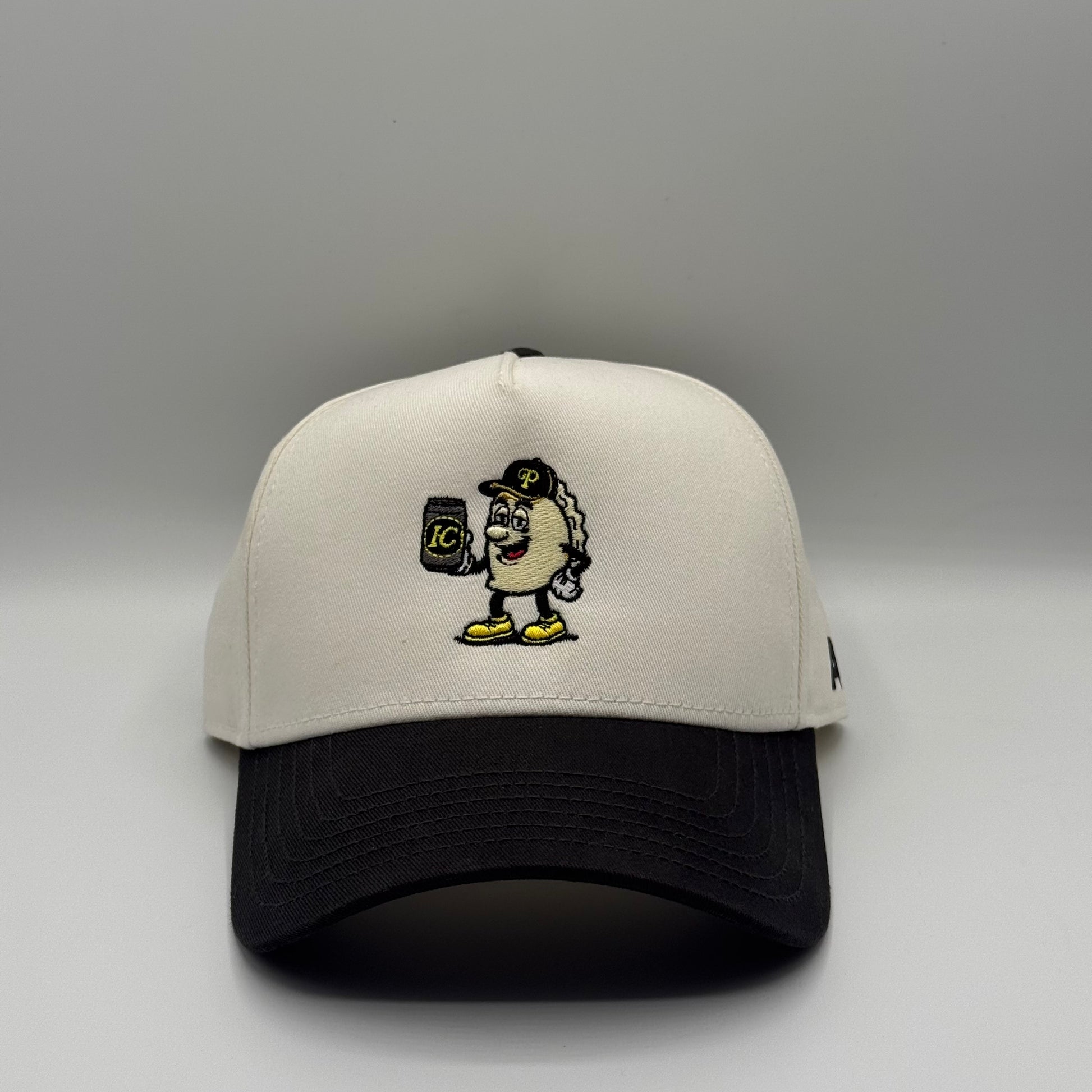 5-Panel High Profile Baseball Cap. Custom embroidered in-house in the heart of downtown Pittsburgh. Material: 100% cotton blend for comfort and durability. Design: Structured with a firm front panel and seamless front panel with full buckram. Ventilation: 4 sewn eyelets for breathability. Visor: Matching color with 6 rows of stitching and a matching fabric under visor. Fit: Adjustable plastic snap closure for a custom fit.