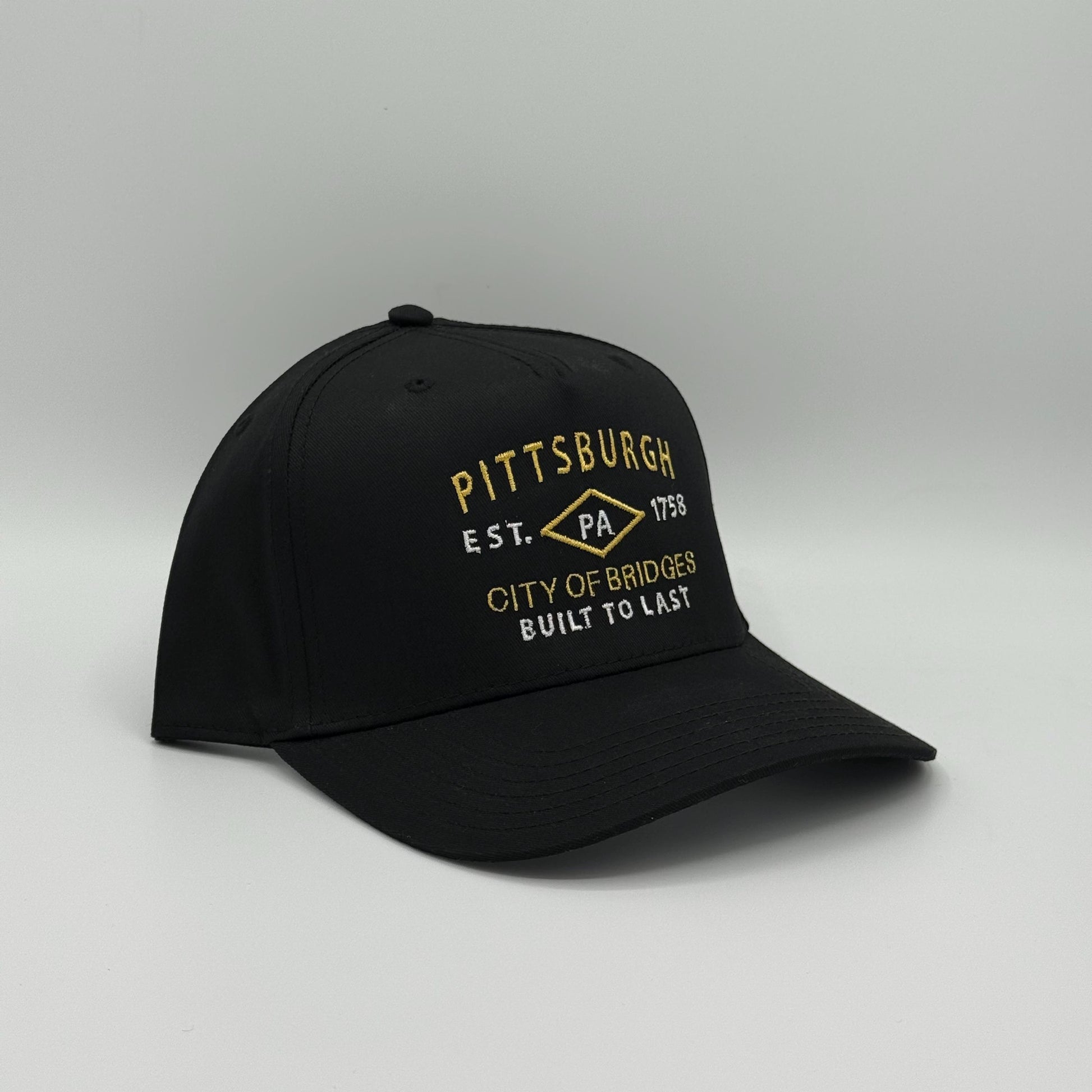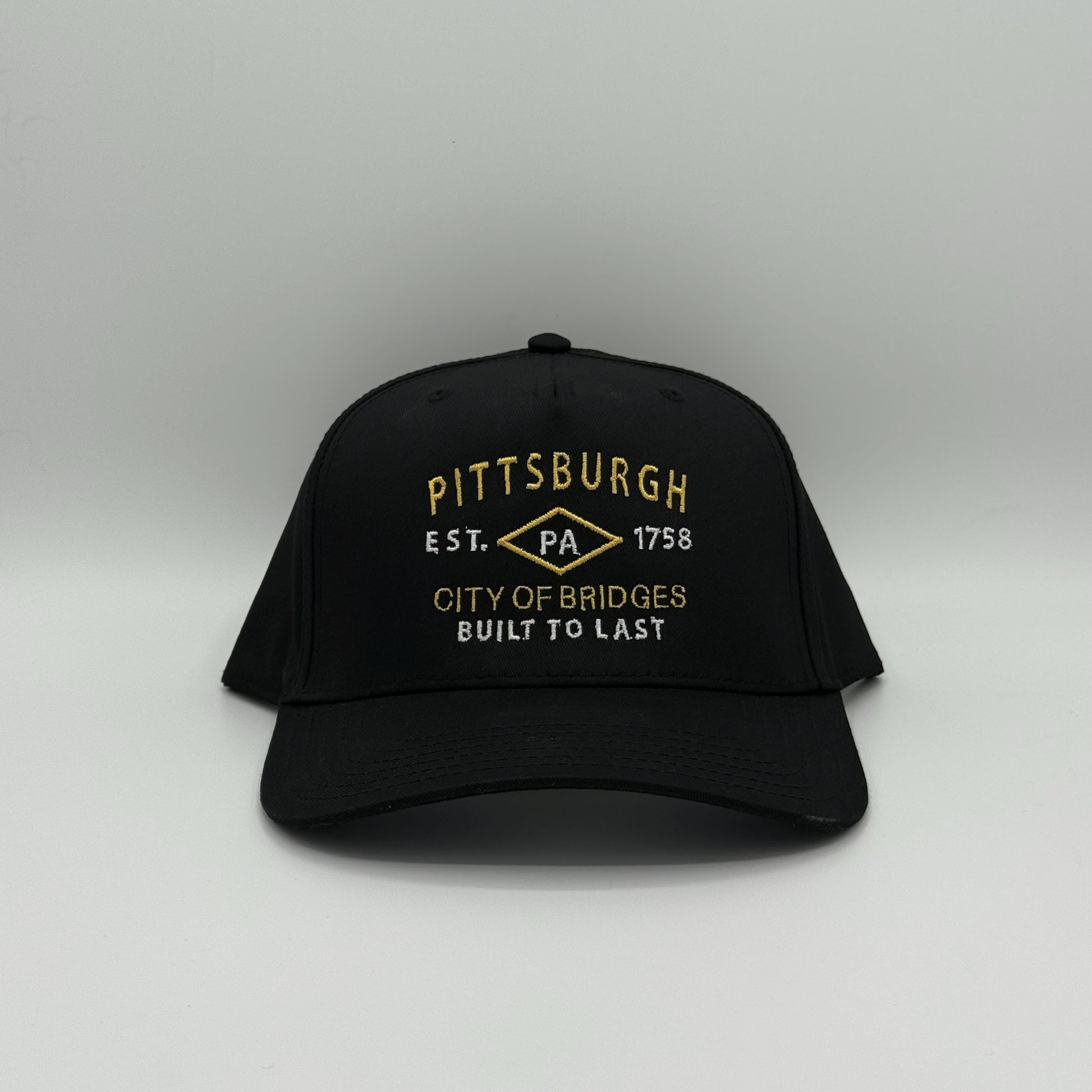 City of Bridges - 5-Panel Mid Profile Baseball Cap. Custom made in-house in the heart of downtown Pittsburgh.
