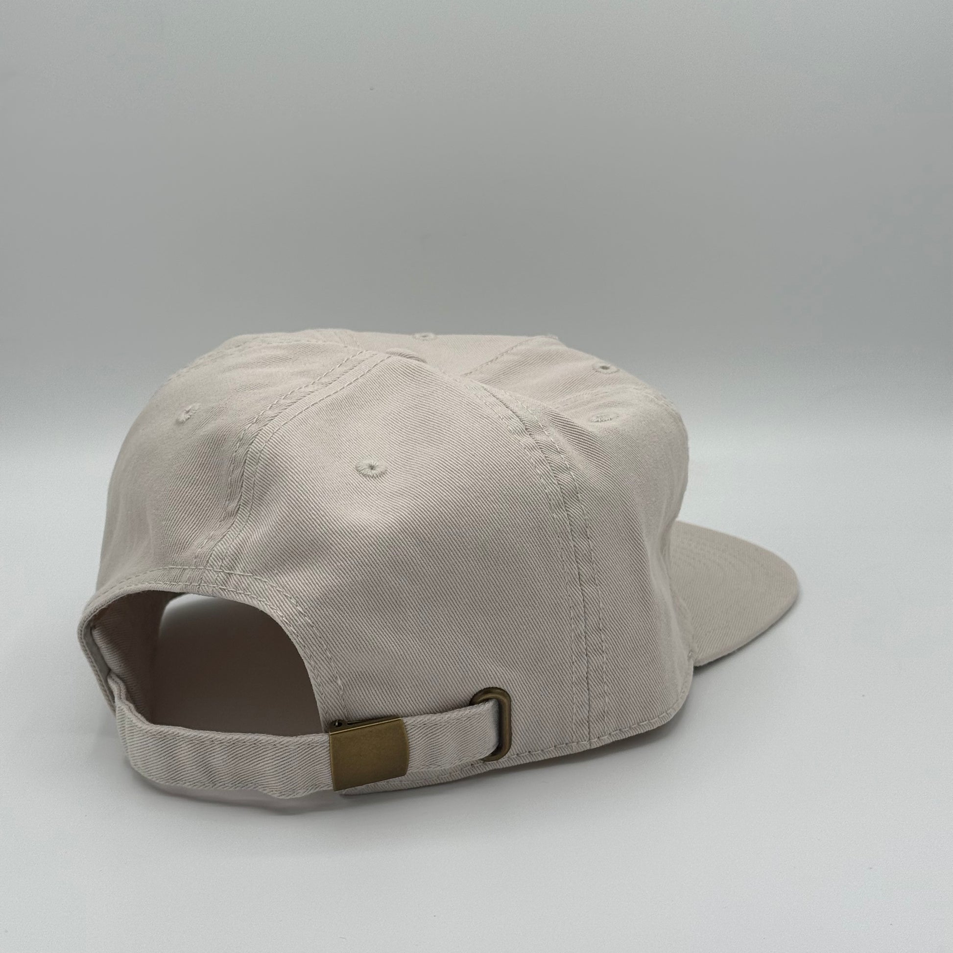 Construction: Mid profile - five panel cap, flat peak
